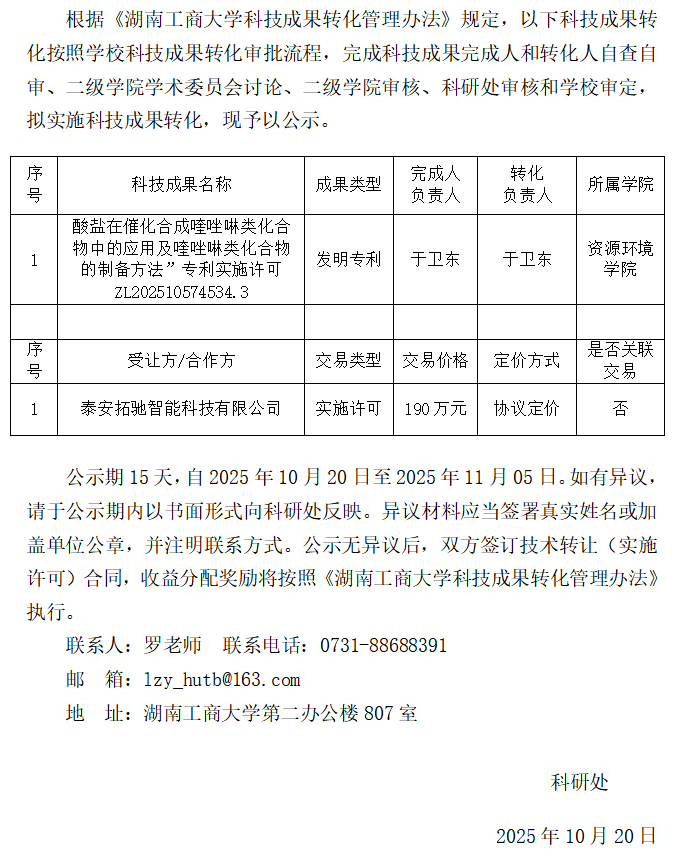 湖南工商大学科技成果转化交易公示(2025R34_1020)