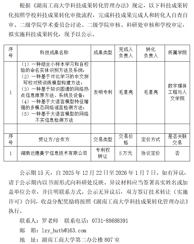 湖南工商大学科技成果转化交易公示(2025R36_1222)