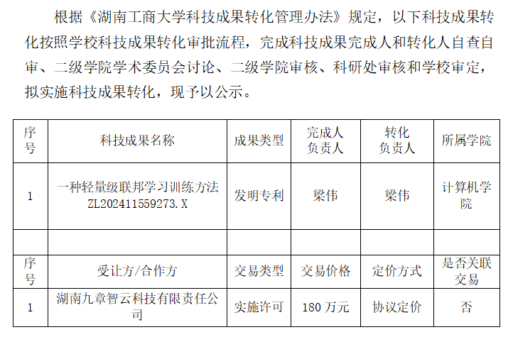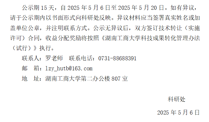 湖南工商大学科技成果转化交易公示(2025R7A_0506)