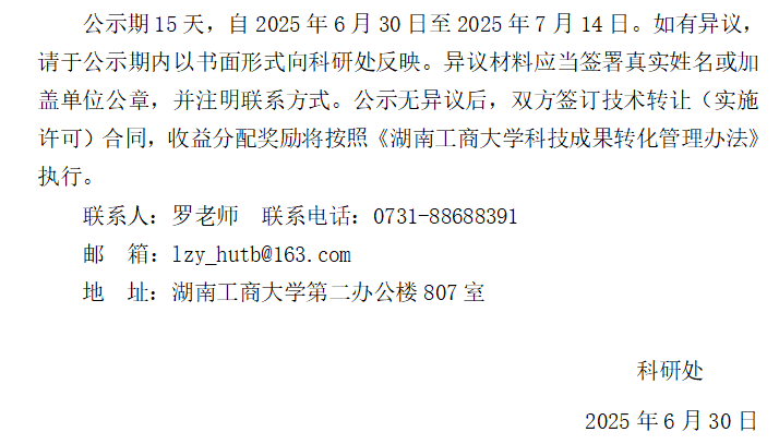 湖南工商大学科技成果转化交易公示(2025R17_0630)