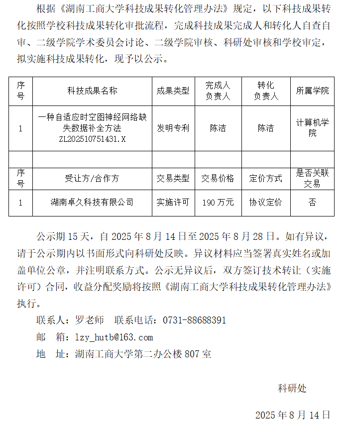 湖南工商大学科技成果转化交易公示(2025R27_0814)
